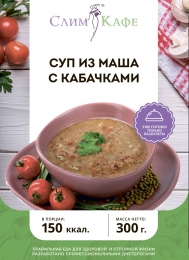 Суп из маша с кабачками от СлимКафе - наваристый густой суп, с яркими оттенками вкуса. Маш или бобы мунг – родом из Индии. Эти бобы маленькие, овальные и зеленые. Они содержат много белка и разных полезных элементов. Суп из маша очень вкусный и питательный!