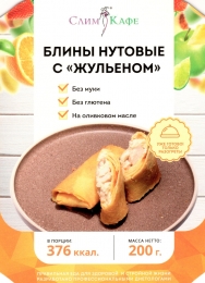 Блины нутовые с курицей, приготовленные в СлимКафе - это вкусное, сытное блюдо. Они считаются одними из самых вкусных и питательных, поскольку куриное мясо любят как взрослые, так и дети, ведь оно отлично подходит для правильного питания. Блинчики получаются очень нежные, вкусные и довольно сытные. Прекрасно подходят как для будничного, так и для праздничного меню. Такие блинчики можно подавать к основному блюду, вместо хлеба или кушать как самостоятельное блюдо!
