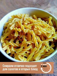 Спирали из красной чечевицы примечательны сочетанием полезных свойств чечевицы и привлекательной для любых кулинарных изысков формой изделий. Спирали отлично подходит как для салатов, так и для супов и вторых блюд. Разнообразные рецепты позволяют использовать эти макароны в различных вариациях.