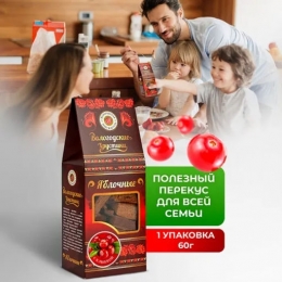 Яблочные Хрустики из пастилы «Клюква» от компании «Русские традиции» - это фирменный продукт, который готовится по старинному русскому рецепту 1888 года из яблок «Антоновка». В составе хрустиков исключительно натуральные ингредиенты без добавления ГМО, глютена, красителей и консервантов. Каждый кусочек изготовлен в печи и упаковывается вручную. Так мы сохраняем всё самое полезное и вкусное, чтобы Вы получали всё самое необходимое. Приятного аппетита!