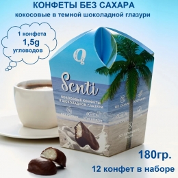 Конфеты без сахара SEnti - это нежная мякоть кокоса в изысканной шоколадной глазури.
