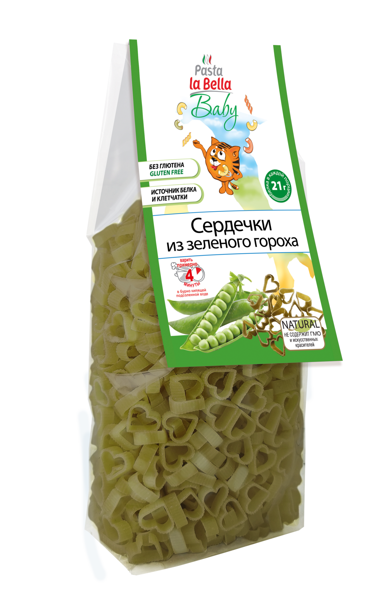 Сердечки из зеленого гороха "Pasta La Bella BABY", 250 гр