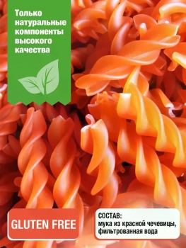 Сырьем для производства Спиралей из красной чечевицы является премиальная круглая чечевица сорта Футбол, не содержащая ГЛЮТЕНА.