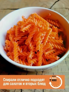 Спирали из красной чечевицы примечательны сочетанием полезных свойств чечевицы и привлекательной для любых кулинарных изысков формой изделий. Спирали отлично подходит как для салатов, так и для супов и вторых блюд. Разнообразные рецепты позволяют использовать эти макароны в различных вариациях.