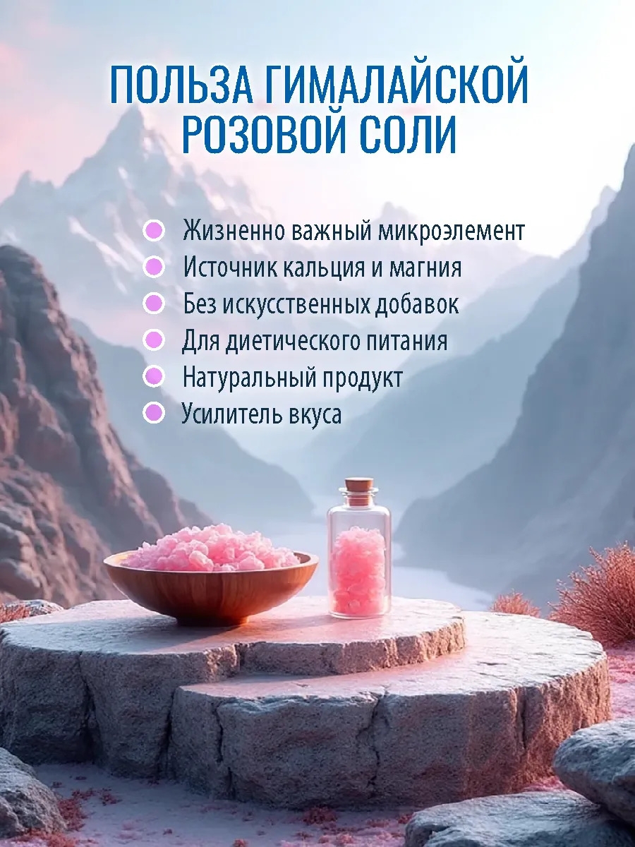 Выберите гималайскую розовую пищевую соль и наслаждайтесь каждым вкусом, зная, что вы делаете выбор в пользу своего здоровья и благополучия!