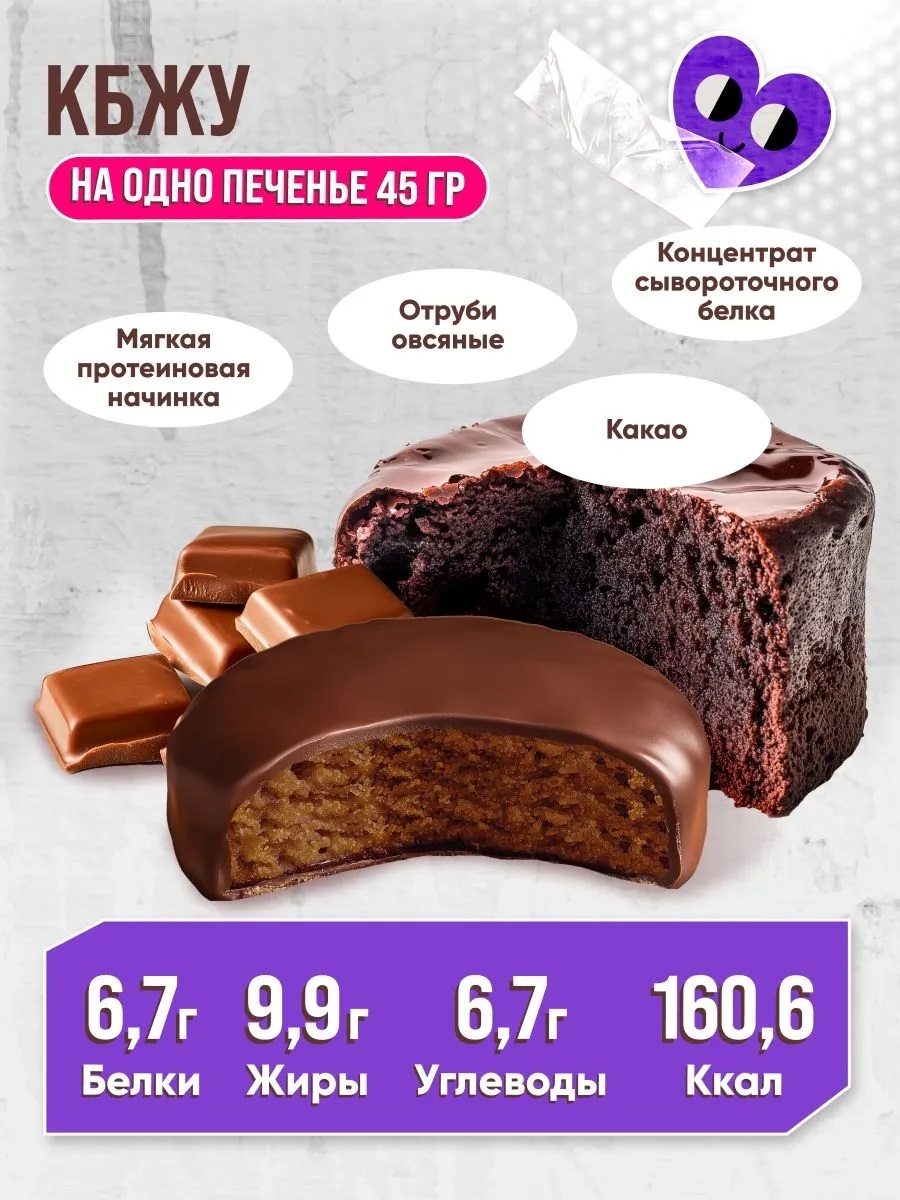 Нежная протеиновая начинка и глубокий вкус настоящего какао превращают каждый укус в удовольствие. Печенье тает во рту и напоминает любимый десерт — только без вреда для фигуры и без чувства вины.