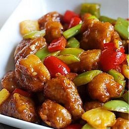 Куриное филе нарезаем крупными кубиками. Обжариваем на хорошо разогретой сковороде, без масла, примерно минут 7-10 и оставляем наше филе в сторонке. Далее займемся овощами: режем мелким кубиком лук и сладкий перец. Разогреваем масло в сковороде и обжариваем нарезанные овощи минут 5-7. Затем вливаем туда соевый соус, добавляем томатную пасту и тушим все минут 15 под крышкой. Пока это все томится, мелко рубим чеснок и перец чили. Но будьте с последним осторожны! Перец чили очень жгучий и поэтому его следует разделывать в полиэтиленовых перчатках. Разрезаем его аккуратно вдоль и отделяем семечки, затем мелко режем. Добавляем их к овощам, кладем куриное филе и специи. Все перемешиваем и томим еще минут 5. В конце посыпаем зеленью.